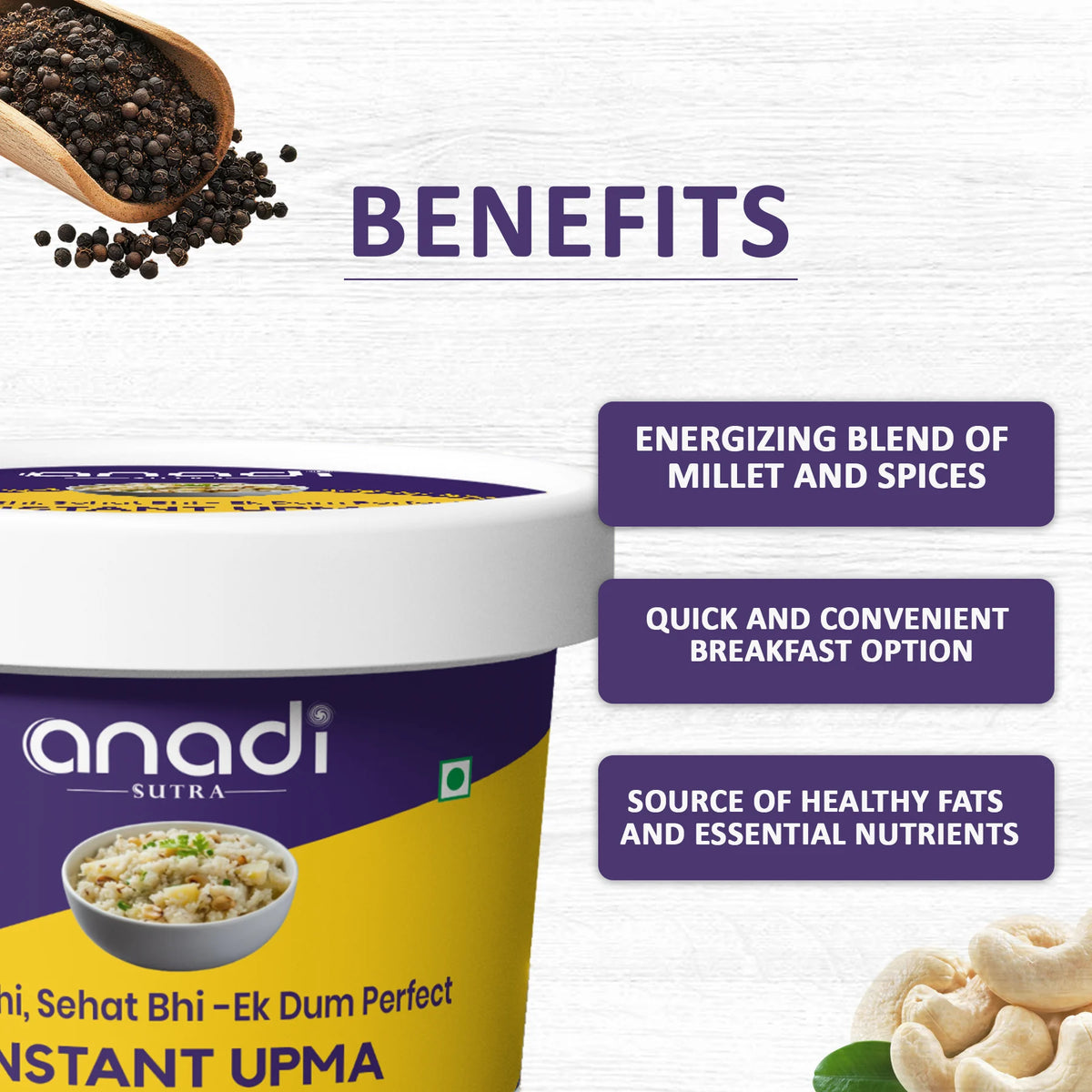 Instant Upma 75 gm | Pre-Roasted In Bilona Ghee Rawa | Nutritious Breakfast | No Red Chili | Travel Friendly | Gluten Free | No Refined Sugar
