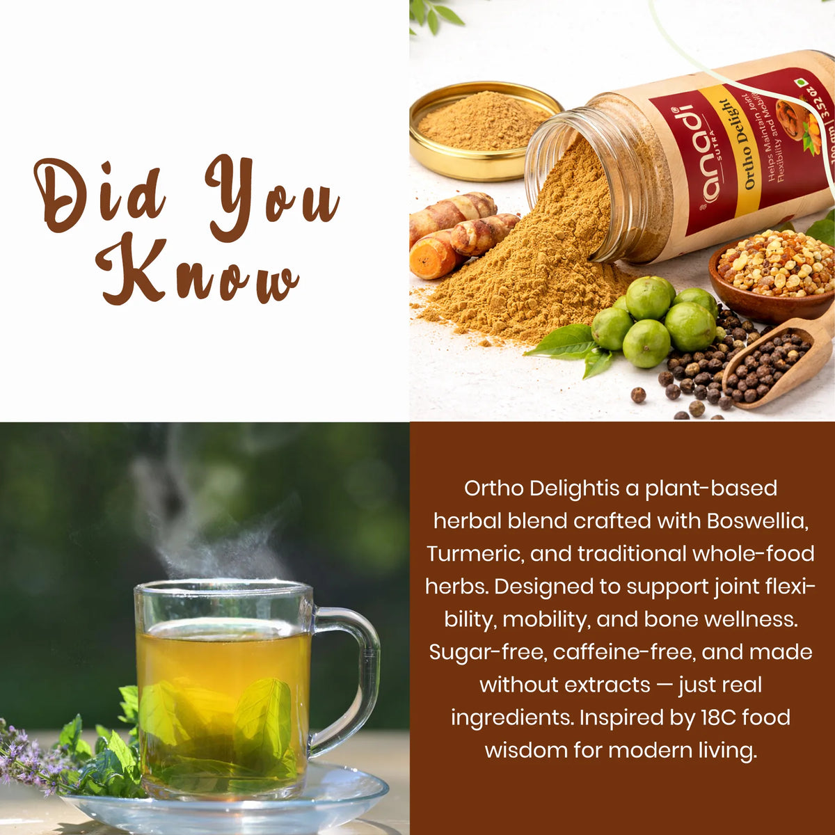 Ortho Delight Herbal Powder 100g | Boswellia Serrata & Turmeric Blend | Whole Herb Formula (No Extracts) | Mobility Support | Plant-Based Joint Care for Men & Women