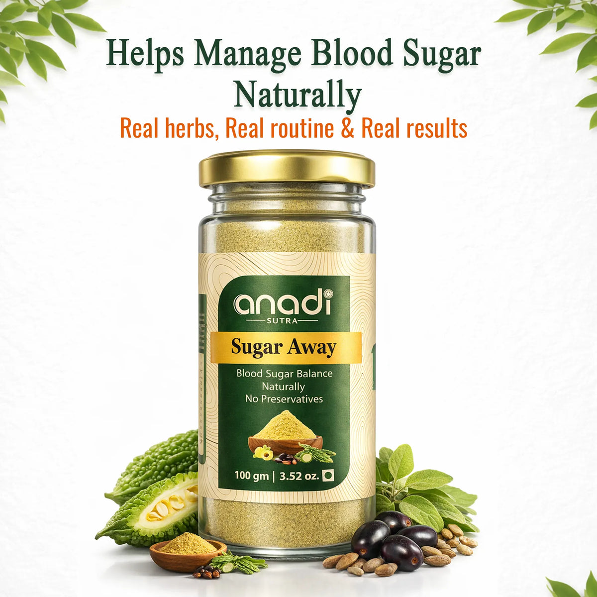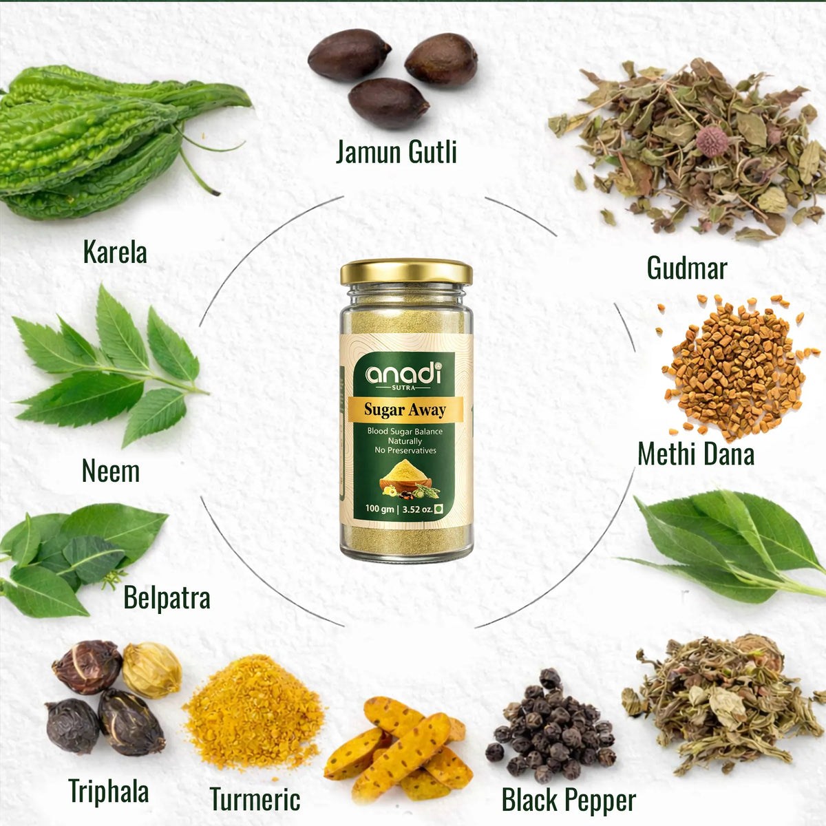 Sugar Away 100 gm | Karela Jamun Guthli, Gudmar Powder | Helps Manage Blood Sugar Levels | Helps Improve Metabolism | Balance Sweets Cravings